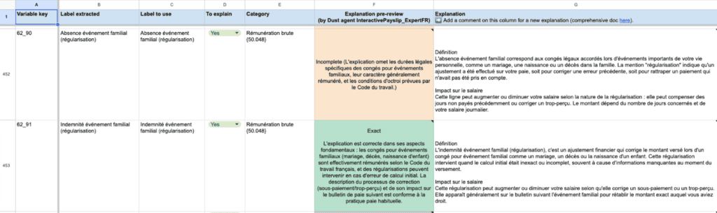 Pour la petite histoire, cet agent “juge” est déjà utilisé par les experts de la paie chez Payfit. L’équipe utilise alors l’API de Dust et… un tableau Excel, tout simplement.