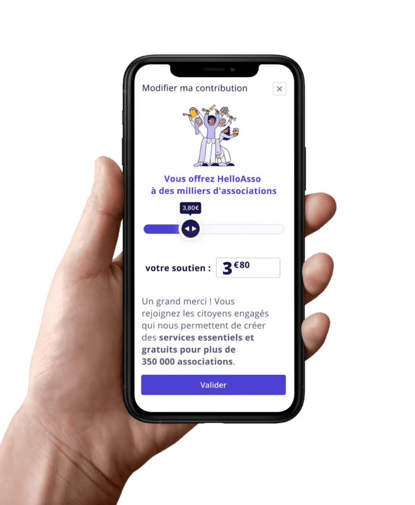 Son unique modèle économique ? La contribution volontaire de ses utilisateurs. C’est-à-dire un versement spontané et ponctuel à HelloAsso, au moment du paiement à une association.